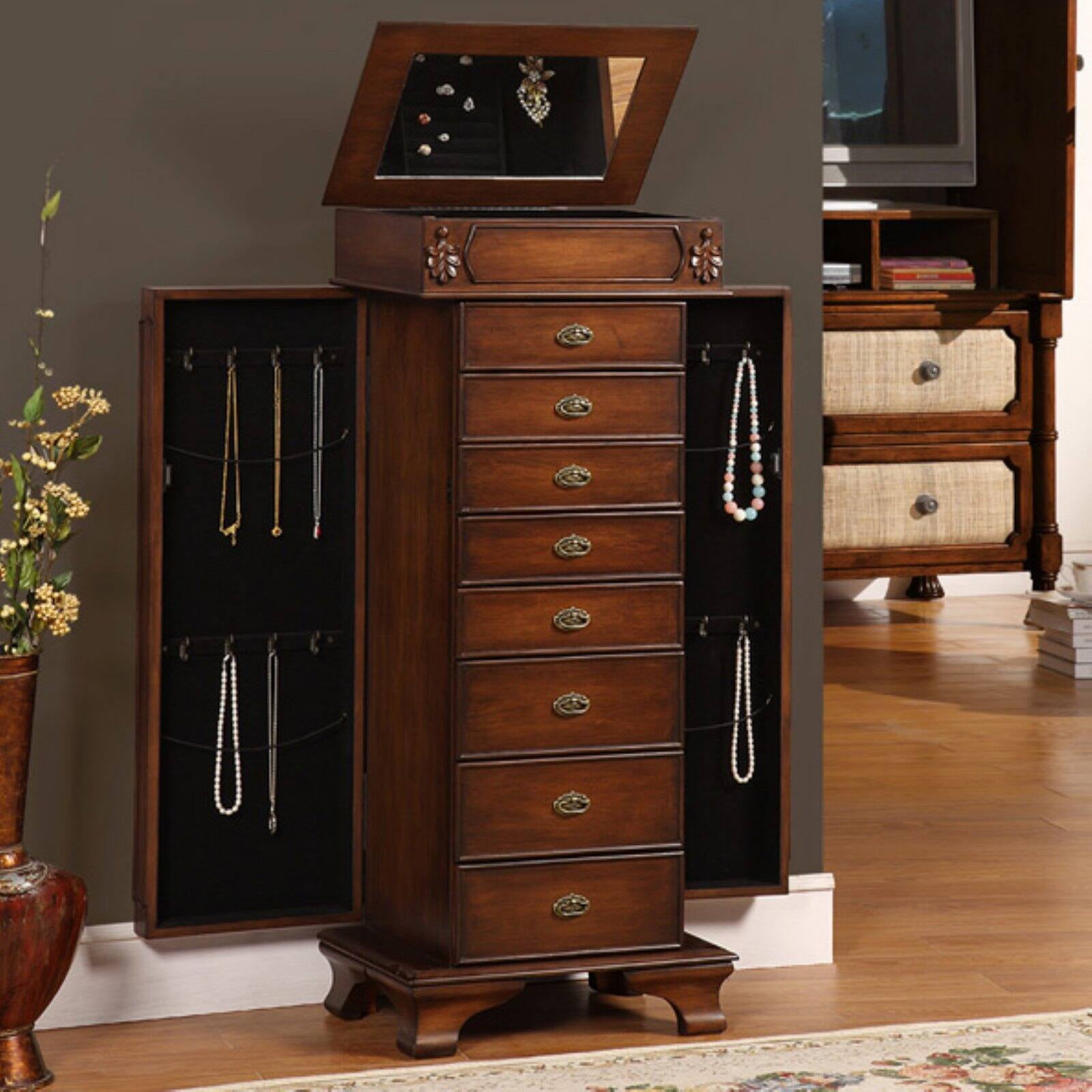 Amazon Com Homde Large Wooden Jewelry Box Cabinet Armoire With