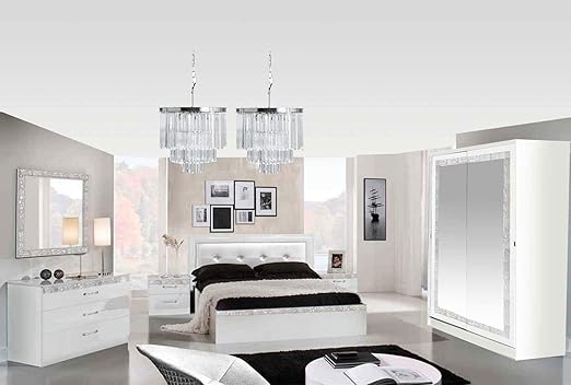 Chambre Complete Design Laque Blanc Armoire 4 Portes Italya 140