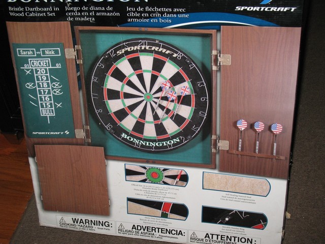 Bonnington Bristle Dartboard In Wood Cabinet Set Sportcraft New