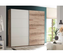Armoire 2 Portes Coulissantes Avec Une Double Penderie Sala Imitation Bois Et Blanc Armoire But