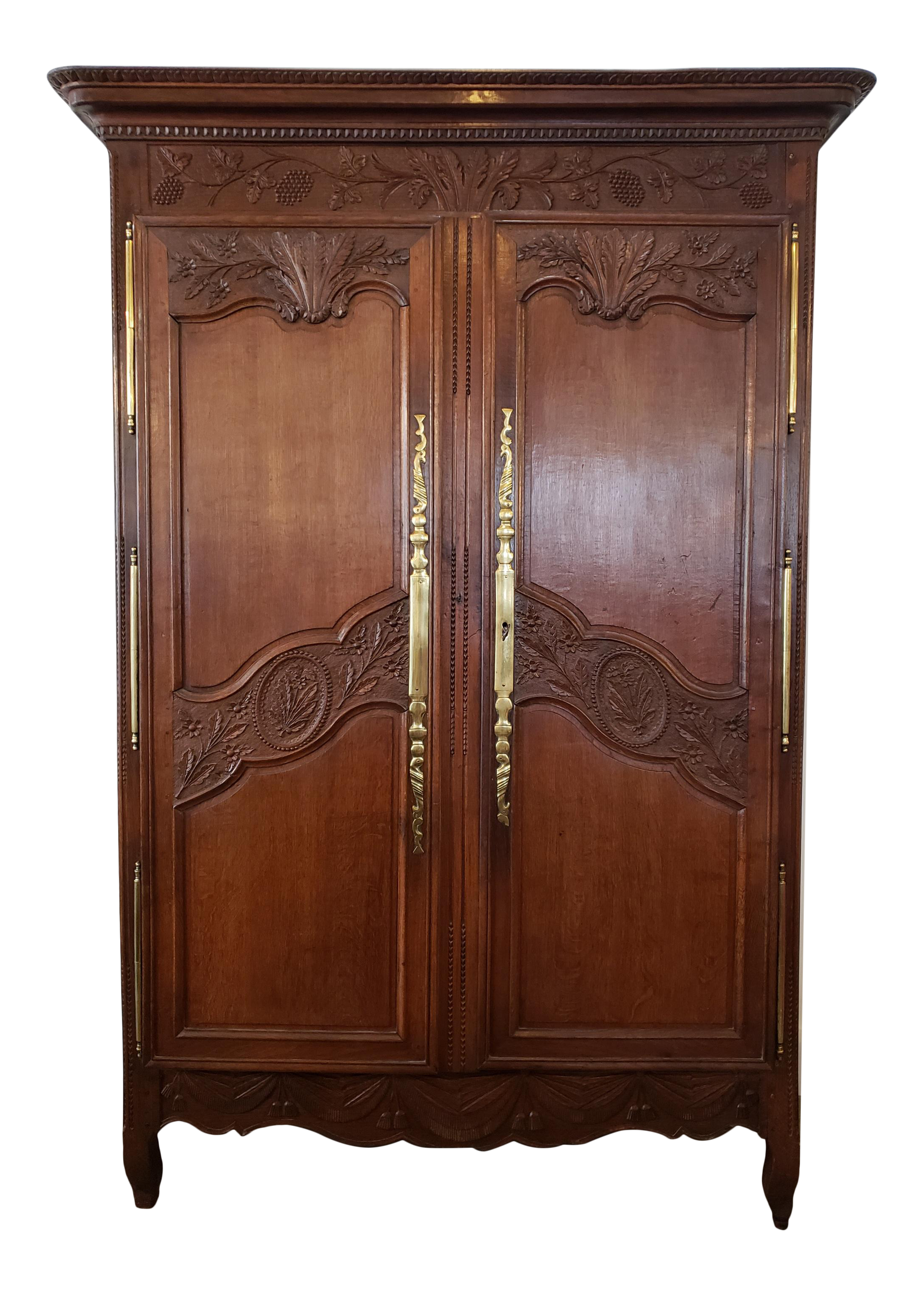 Exceptional 18th Century French Carved Walnut Wedding Armoire From