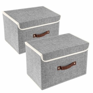 2 Pack Boites Rangement Couvercle Et Poignee Pliable En Tissu Caisse Panier Ebay