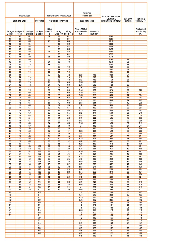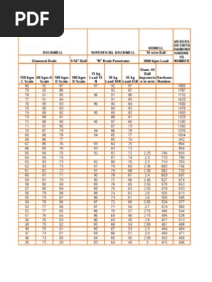 Hardness Conversion Table Physique Appliquee Et