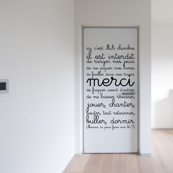 Sticker Les Regles De Ma Chambre E0260 Sticker Chambre Adhesif