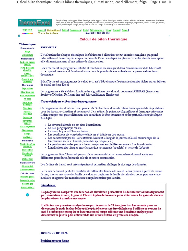 Calcul Bilan Thermique Calculs Bilans Thermiques Climatisation Ensoleillement Frigorifique Energie Chauffage Et De Refroidissement
