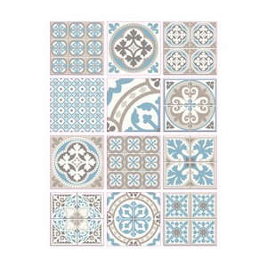Planche De 12 Stickers Adhesif Effet Carreaux De Ciment Moziblue
