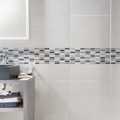 Carrelage Mural Blanc Fantaisie 24 X 55 Cm Castorama Carrelage Mural Blanc Salle De Bains Design Carrelage Carrelage Salle De Bain