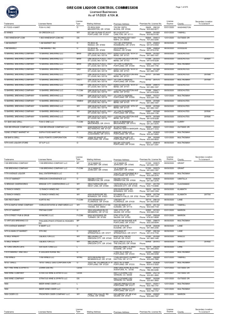 Licenses By Type Portland Fermented Drinks
