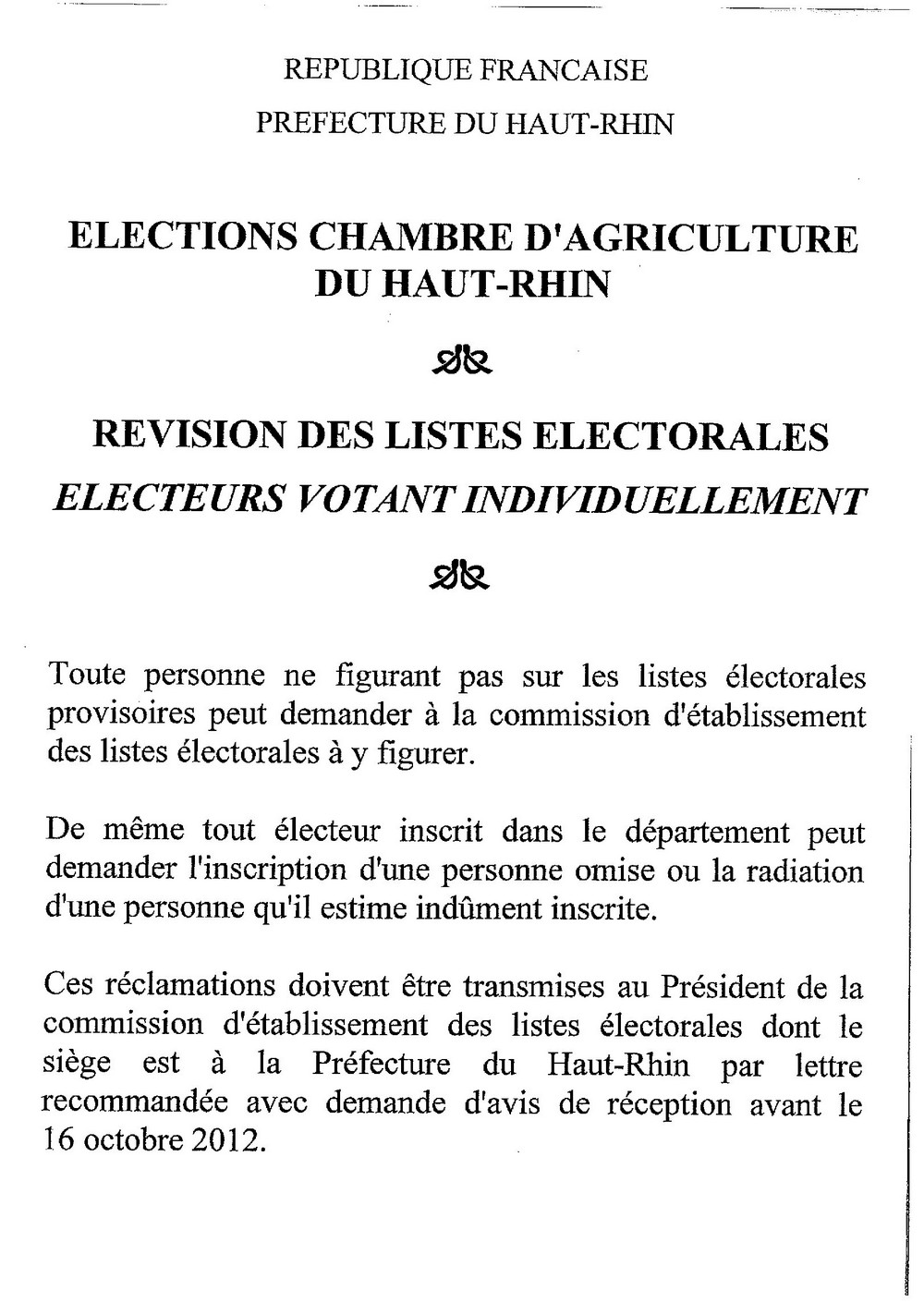 Avis De Revision Pour Les Elections De La Chambre D Agriculture Du