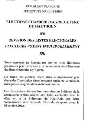 Liste Electorale Chambre D Agriculture Du Haut Rhin 2013