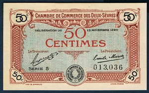 Chambre De Commerce Des Deux Sevres 50 Cts Pirot 93 10 Du 13 11
