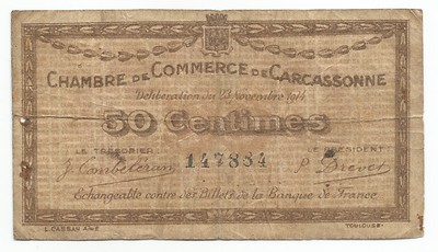 Billet Necessite 50 Centimes Chambre De Commerce De Carcassonne