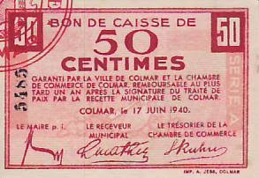 50 Francs 1940 France 50 Francs Colmar Chambre De Commerce Serie