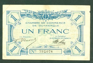 1 Franc Chambre De Commerce De Dunkerque Spl 1914 1925
