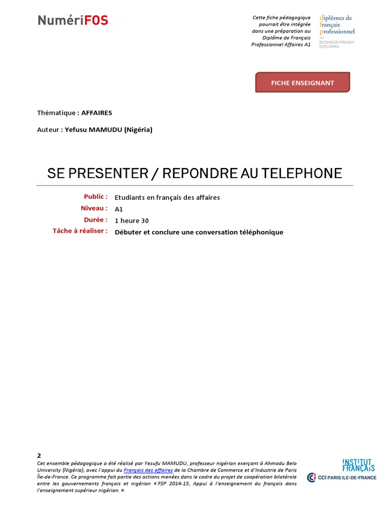A1 Se Presenter Repondre Au Telephone Enseignant France