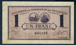 1 Franc France Regionalism And Miscellaneous Toulouse 1917 Jp