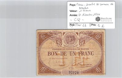 Billet Des Chambres De Commerce Nantes 1 Franc