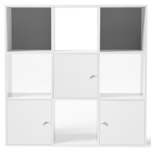 Meuble De Rangement Cube 9 Cases Bois Blanc Avec 3 Portes Fond Gris 13423