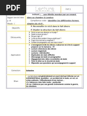 Fiches Pedagogiques1 Asc L Heure De Francais Lecture Processus Verbe