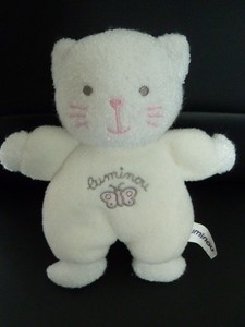 Doudou Peluche Luminou Jemini Chat Blanc Moustache Papillon Rose