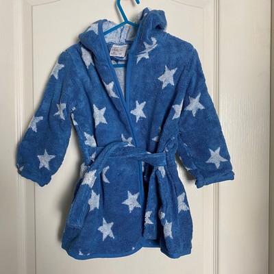 New Vertbaudet Blue White Star Towelling Bath Robe Dressing Gown