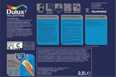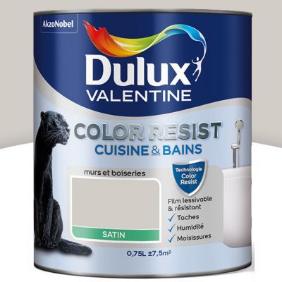 2 l quantité. La peinture color resist cuisine et bains est idéale pour décorer et protéger les murs plafonds portes plinthes de ces pièces humides. Color resist de dulux valentine est une peinture révolutionnaire offrant un aspect satin ultra lessivable et ultra résistant.