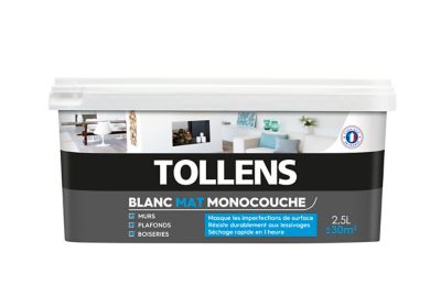 Peinture Monocouche Murs Plafonds Boiseries Tollens Blanc Mat 2 5l