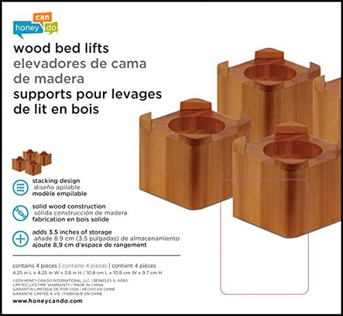 Honey Can Do Sto 01150 Wood Bed Lifts Maple Finish 4 Pack