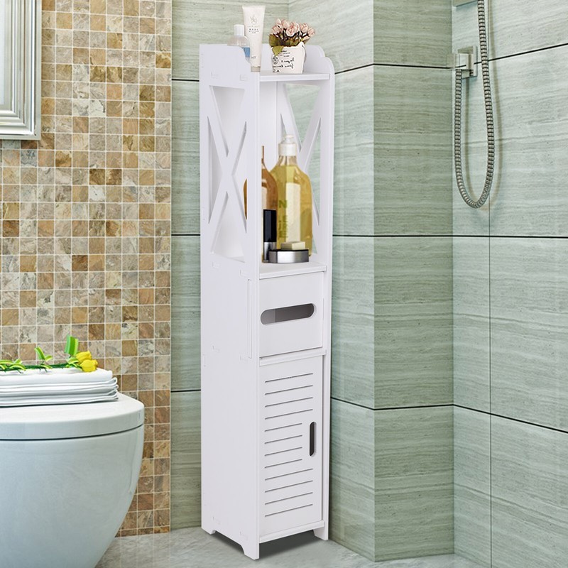 Meuble De Salle De Bain Blanc Armoire De Rangement Etagere Commode
