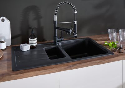 Evier En Granit Noir 1 5 Bacs A Encastrer Arber Castorama