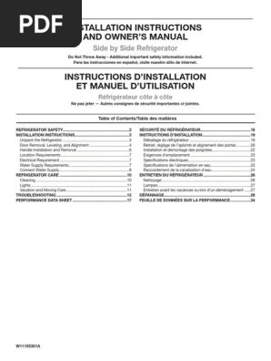 Whirlpool Installation Instruction For W11105301a Refrigerator