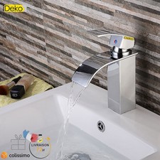 Mitigeur Salle Bain Robinet Lavabo Cascade Evier Chrome Bec Aplati