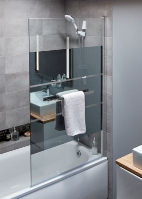Pare Baignoire 1 Volet Serigraphie Profiles Gris Argent 140 X 71