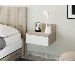 Chevet Suspendu Avec Tiroir Lanash Blanc Et Imitation Chene En 2020 Chevet Suspendu Table De Chevet Suspendue Et Deco Chambre