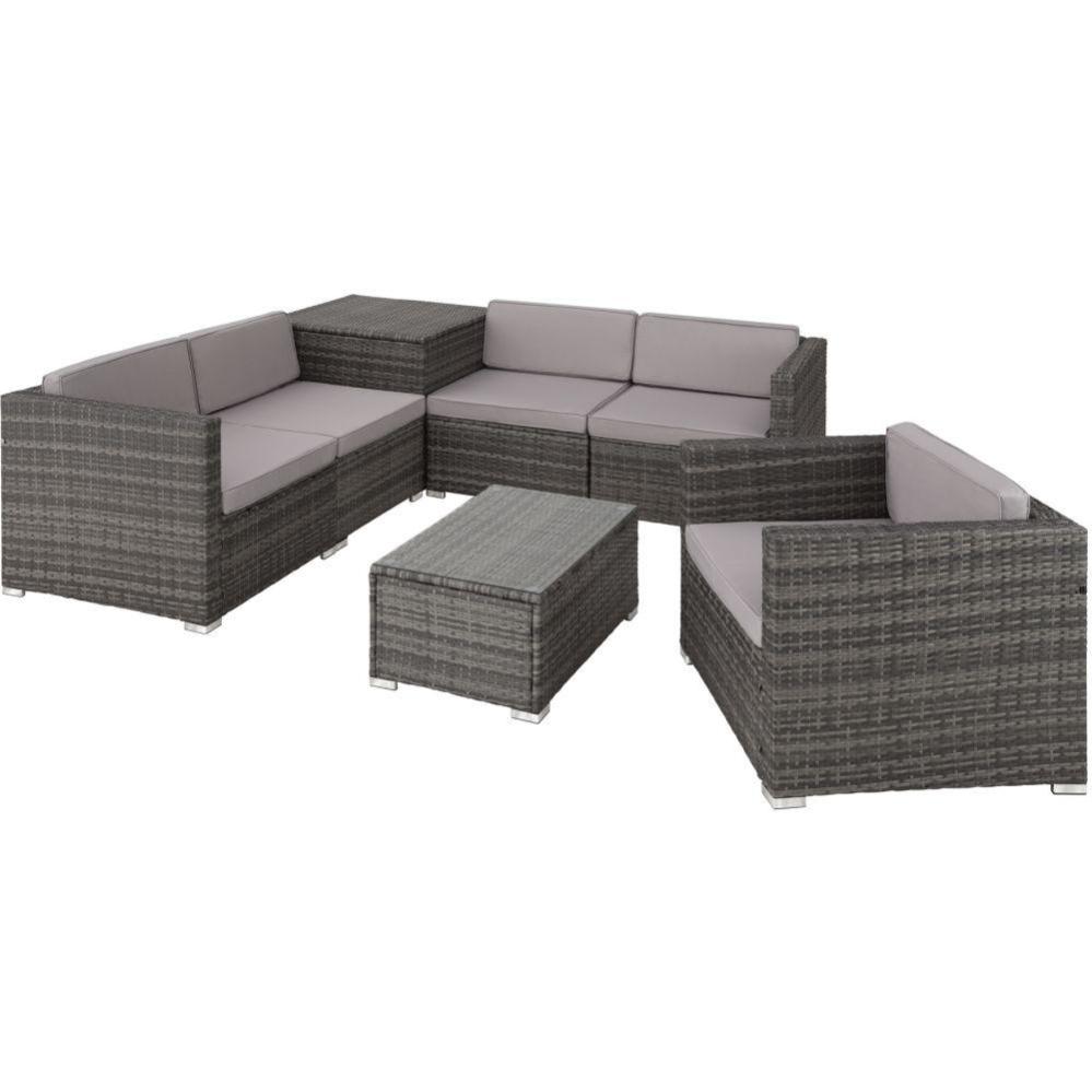Canape De Jardin Meuble 5 Places Avec Coffre De Rangement Gris