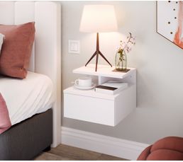 Chevet Suspendu Avec Tiroir Lanash Blanc Table De Chevet But