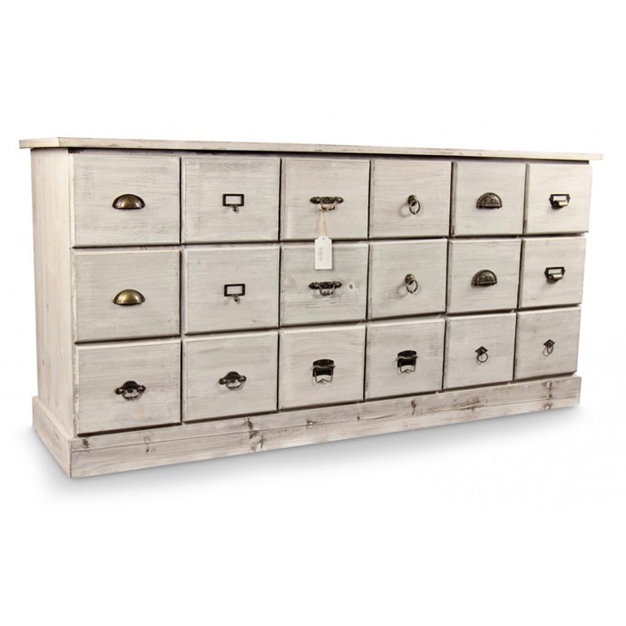 Meuble Semainier Chiffonnier Grainetier Bois 16 Tiroirs Ceruse