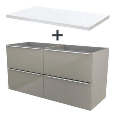 Meuble Sous Vasque Taupe 120 Cm Pamili Plan Vasque Blanc 120 Cm