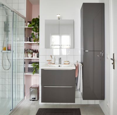 Meuble Salle De Bain Laquee Blanc Ou Gris Imandra Brico Depot