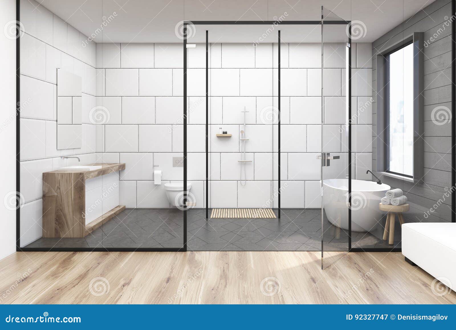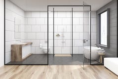 Interieur De Salle De Bain Clair Avec Mur De Verre Et Appareils