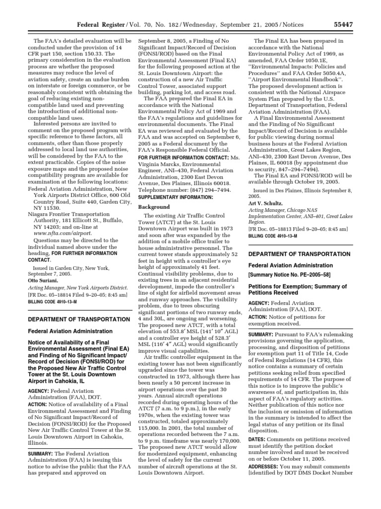 Notice Exemption Petitions Summary And Disposition Federal