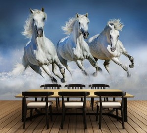 Peintures Murales 3d Personnalisees Chevaux Blancs Papel De