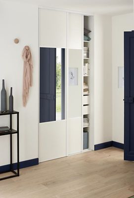 Porte De Placard Coulissante Structuree Miroir Blanc Form Valla 62