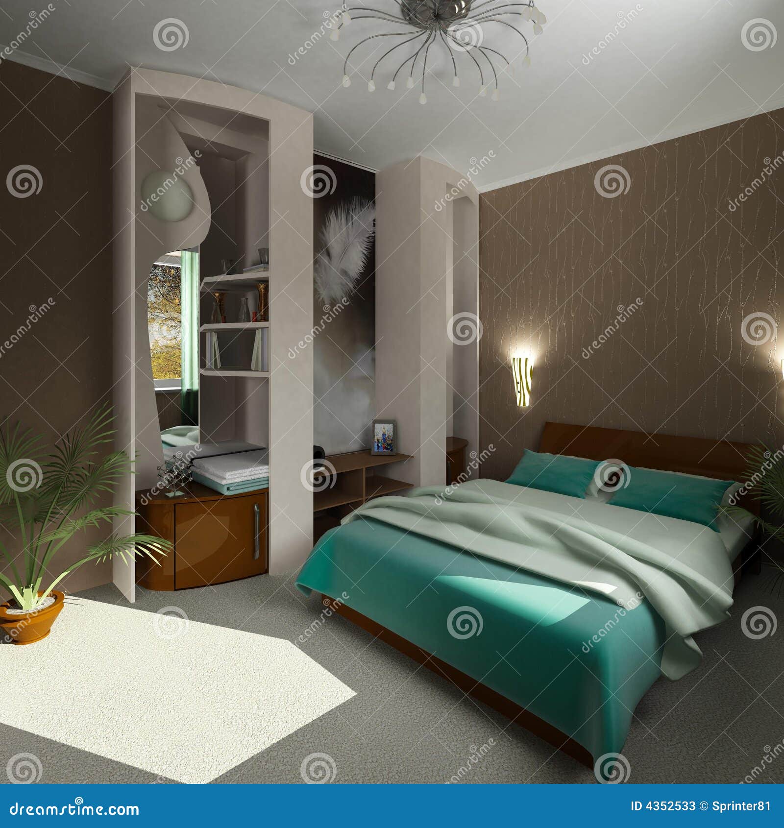 3d Modern Comfort Bedroom Stock Illustration Illustration Of Curtain 4352533