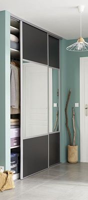Porte De Placard Coulissante Miroir Gris Anthracite Form Valla 92