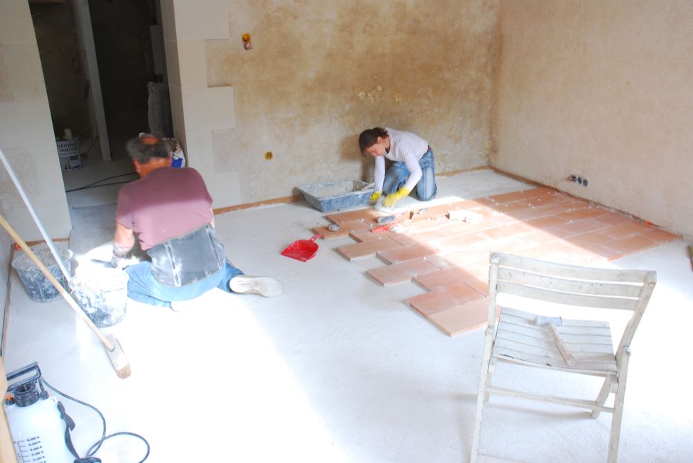 Chantier Pose Carreaux Terre Cuite Artisanaux 02 Tirage Chape