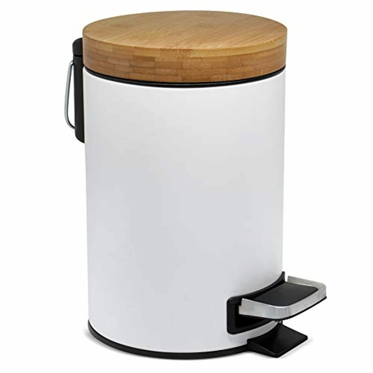 Poubelle De Salle De Bain En Metal Blanc Couvercle Bambou A Pedale
