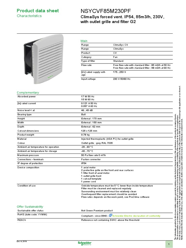 Product Datasheet Nsycvf85m230pf Schneider Product Datasheet Characteristics Nsycvf85m230pf Climasys