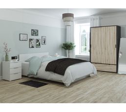 Armoire 2 Portes 1 Tiroir L 89 Cm Ready Imitation Chene Et Blanc