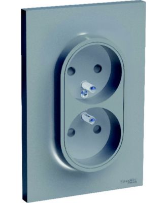Double Prise 2 Poles Terre Schneider Electric Odace Aluminium